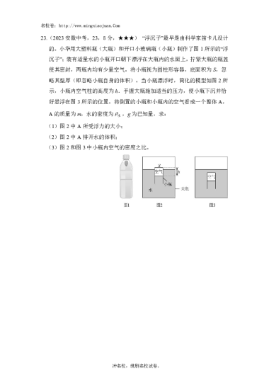 转载请注明出处: 名校卷 » 2023年安徽省初中学业水平考试物理-解析