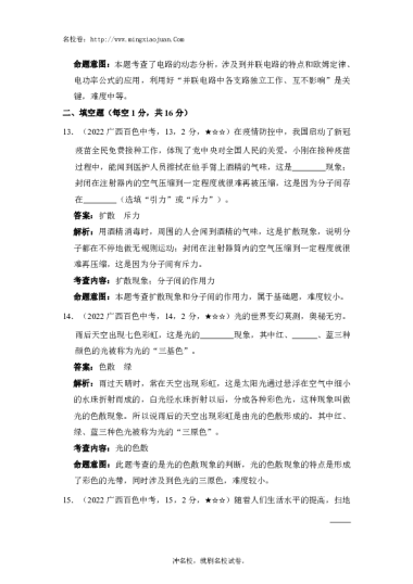 转载请注明出处: 名校卷 » 2022年百色市初中学业水平考试试卷物理-解析