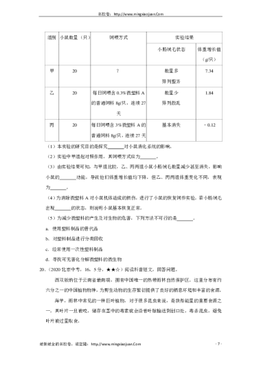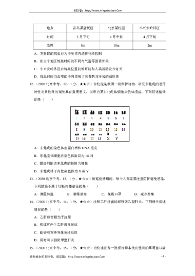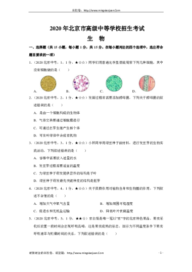 转载请注明出处: 名校卷 » 2020年北京市高级中等学校招生考试生物