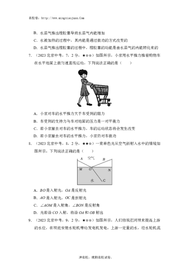 转载请注明出处: 名校卷 » 2023年北京市初中学业水平考试物理试卷-原题