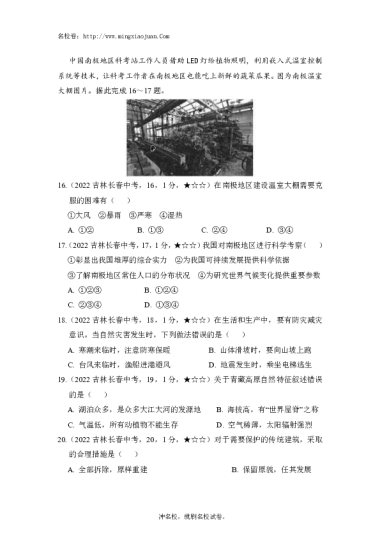 转载请注明出处: 名校卷 » 2022年长春市初中学业水平考试地理-原题