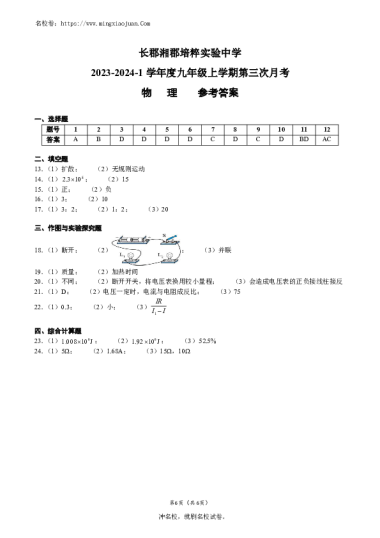 231206-01长郡培粹2023-2024-1九上三次月考物理(含参考答案)(已核对)