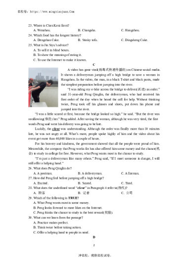 转载请注明出处: 名校卷 » 【英语】2022-2023-2雅礼集团八下期末考试英语