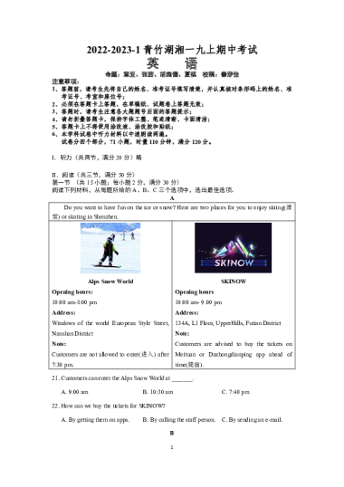 转载请注明出处: 名校卷 » 2022-2023-1青竹湖湘一外国语学校初三期中英语试卷(含答案)