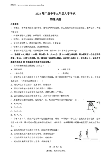 2023-2024-1华益中学初三入学考试物理试卷(含答案)
