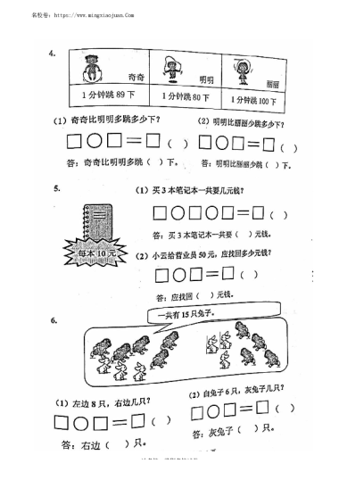 转载请注明出处: 名校卷 » 2018-2019-2开福区一年级期末数学试卷(无答案)