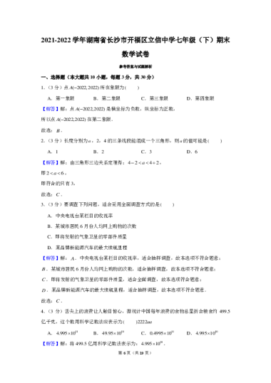 转载请注明出处: 名校卷 » 2021-2022学年湖南省长沙市开福区立信中学七年级(下)期末数学试卷(含答案解析)