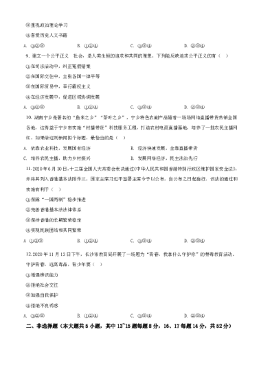 2021年湖南省长沙市中考道德与法治真题(空白卷)