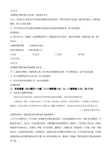 转载请注明出处: 名校卷 » 2023年湖南省长沙市中考道德与法治真题(解析卷)