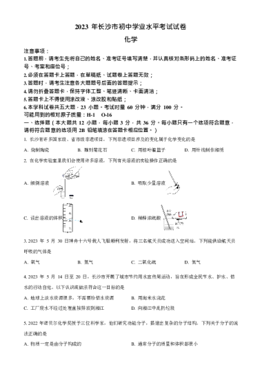 转载请注明出处: 名校卷 » 2023年湖南省长沙市中考化学真题(空白卷)
