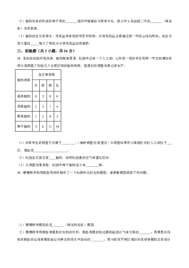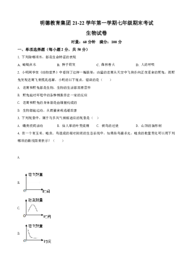 转载请注明出处: 名校卷 » 【生物】明德教育集团2021-2022学年七年级上学期期末生物试题