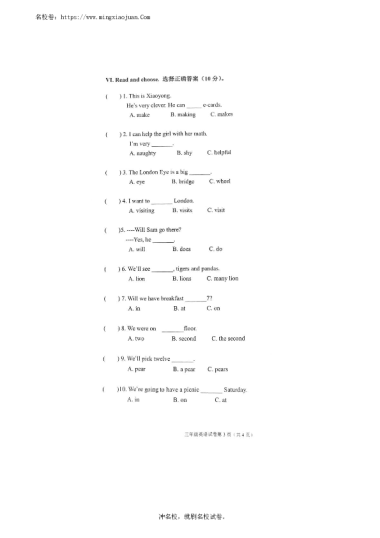 转载请注明出处: 名校卷 » 2021-2022-2芙蓉区三年级期末英语试卷(含答案)