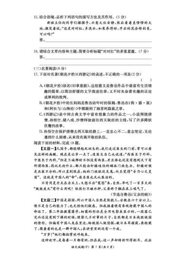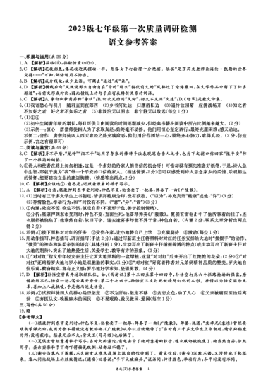 转载请注明出处: 名校卷 » 2023-2024-1附中教育集团初一第三次月考语文试卷(含答案)