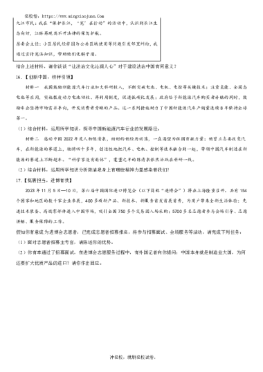 转载请注明出处: 名校卷 » 23.11政治雅礼集团2023-2024九上第三次月考卷