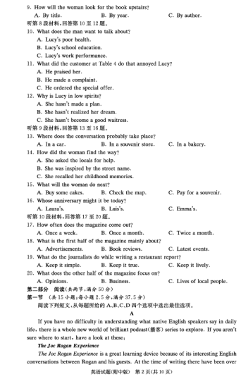 转载请注明出处: 名校卷 » 湖南师大附中2025届高三月考试卷(三)英语试卷(附中高三3次)