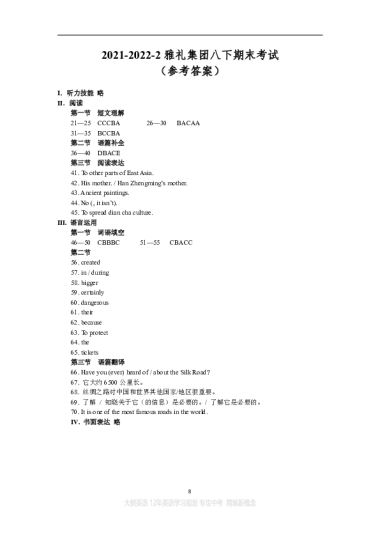 转载请注明出处: 名校卷 » 2021-2022-2雅礼集团八下期末考试英语