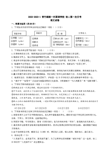2022-2023-1青竹湖湘一外国语学校初二第一次月考语文试卷(含答案)