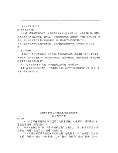 湖南省长沙市长郡教育集团2021-2022学年七年级下学期期末考试语文试题
