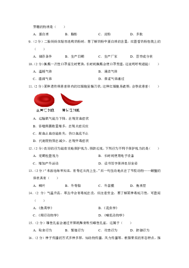 2021年湖南省长沙市中考生物真题(空白卷)