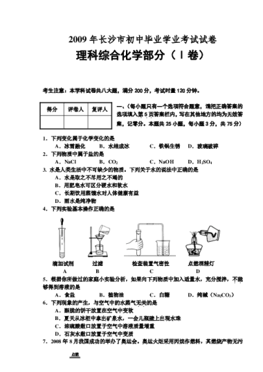 转载请注明出处: 名校卷 » 2009年湖南省长沙市中考化学真题及答案