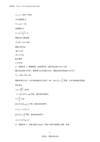 转载请注明出处: 名校卷 » 长沙市长郡中学2022-2023学年高一第一学期入学考试物理答案