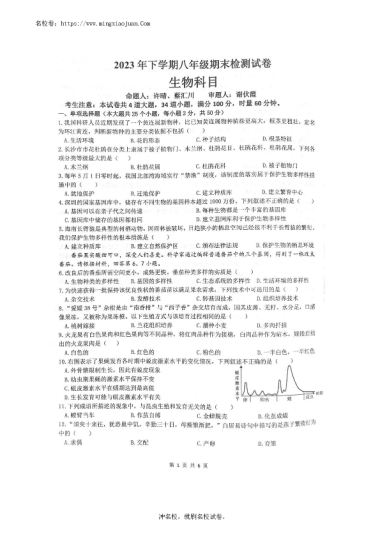 转载请注明出处: 名校卷 » 2023-2024-1雅礼教育集团初二期末生物试卷(无答案)