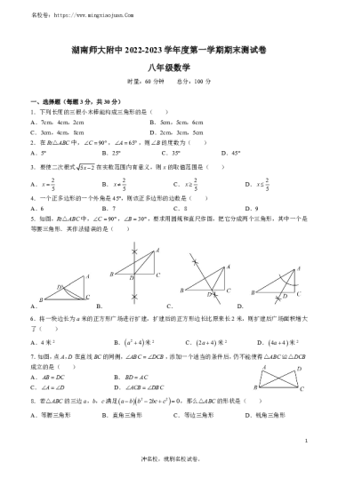 湖南师大附中2022-2023学年度第一学期期末测试卷八年级数学