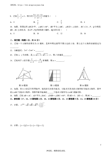 转载请注明出处: 名校卷 » 湖南师大附中2022-2023学年度第一学期期末测试卷八年级数学