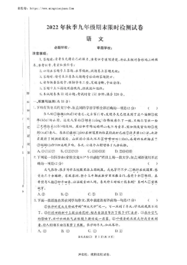 2022-2023-1长郡教育集团初三期末考试语文试卷(含答案)