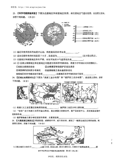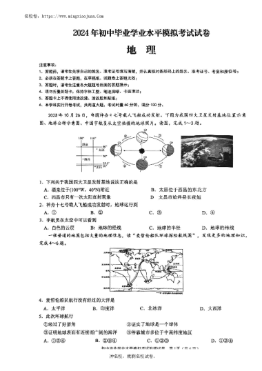 转载请注明出处: 名校卷 » 2024年初中学业水平地理模拟考试试卷(含答案)