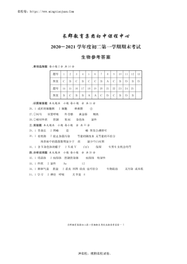 转载请注明出处: 名校卷 » 2020-2021-1长郡教育集团初二期末生物试卷(含答案)