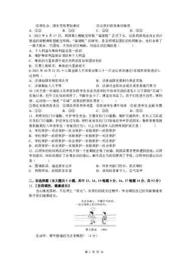 转载请注明出处: 名校卷 » 2021-2022-2湖南师大附中博才实验中学七年级下学期期末考试道德与法治试题-答案卷尾