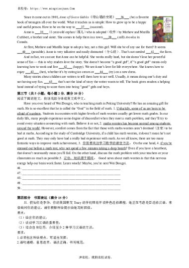 ©试卷著作权归作者所有。本站所有试卷来源于网络,仅供学习使用,祝您考上理想的学校!