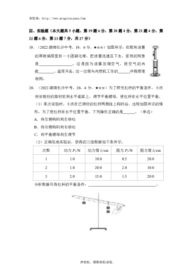 转载请注明出处: 名校卷 » 2022年长沙市初中学业水平考试试卷物理-原题