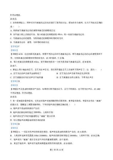 转载请注明出处: 名校卷 » 精品解析:湖南省长沙一中集团2022-2023学年八年级上学期期中物理试题(解析版)