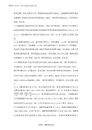 转载请注明出处: 名校卷 » 长沙市雅礼中学2022-2023学年高一第一学期入学考试化学答案