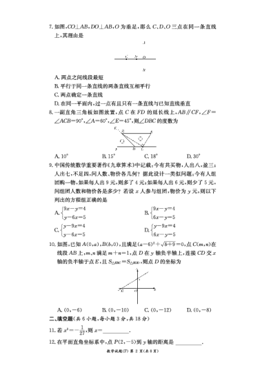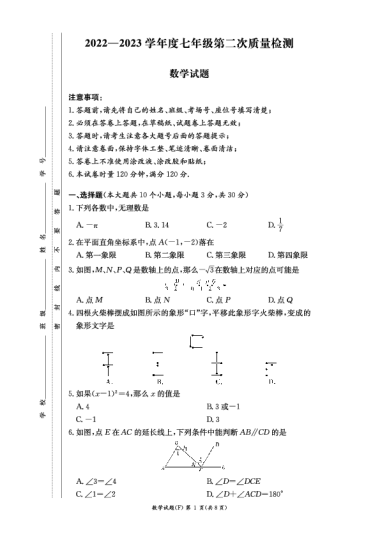 2022-2023-2附中教育集团初一期中数学试卷(含答案)
