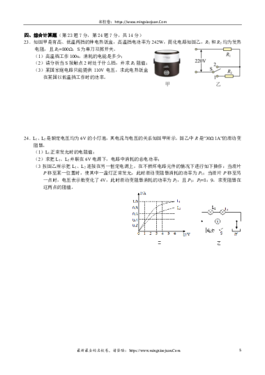 转载请注明出处: 名校卷 » 240123-03雅礼集团2023-2024-1九上期末考试物理(含参考答案)
