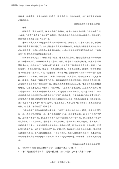 转载请注明出处: 名校卷 » 雅礼集团2023-2024学年第一学期12月联考高一语文
