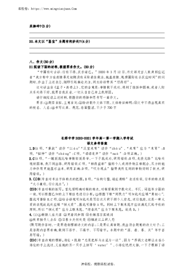 转载请注明出处: 名校卷 » 长郡中学2020-2021学年高一第一学期入学考试语文