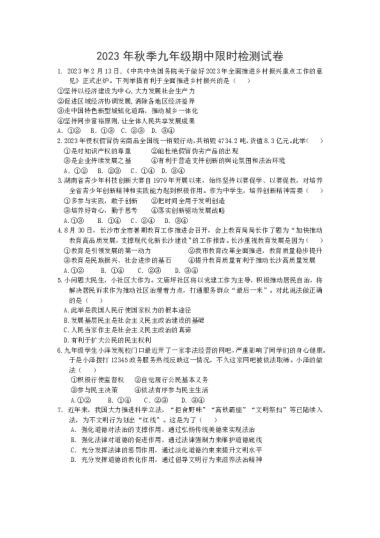道法资料2023-2024长郡九上期中试卷及答案