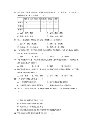 2021-2022-2雅礼教育集团初一期末生物试卷(含答案)