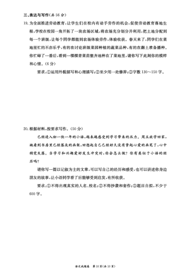 2022-2023-2一中教育集团初一期中语文试卷(含答案)