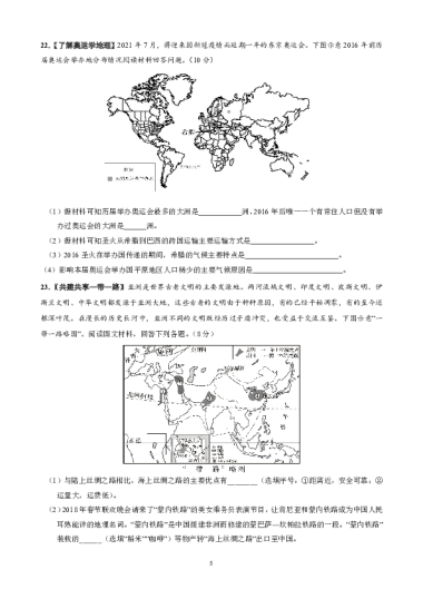 转载请注明出处: 名校卷 » 2022年初中模拟地理试卷+答案(三)
