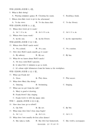 部分试卷无答案,有答案一般在试卷的末尾,也有部份答案会独立在下方下载位置提供下载。