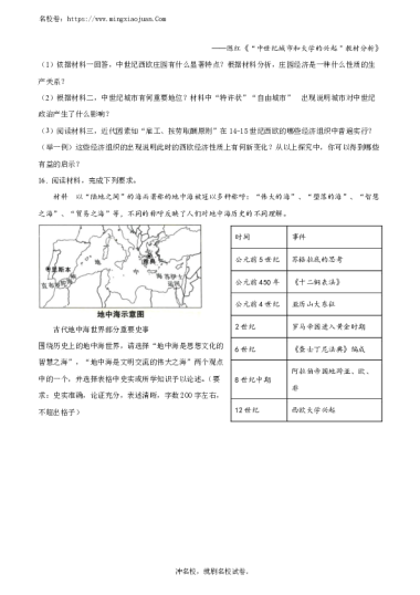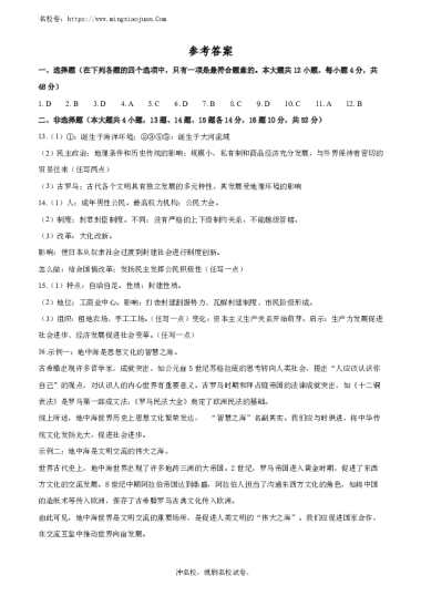 转载请注明出处: 名校卷 » 【历史】2024-2025:青竹湖湘一外国语学校九年级上学期第一次月考试卷及答案