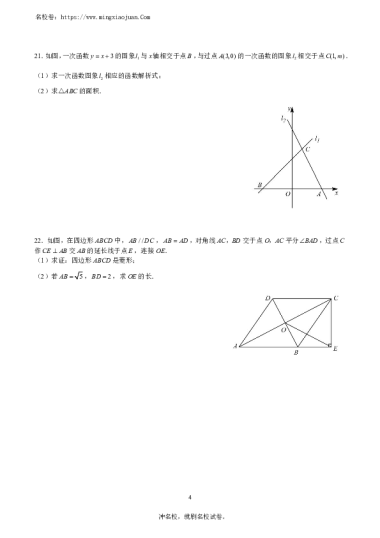 转载请注明出处: 名校卷 » 2022-2023-2雅礼教育集团初二期中数学试卷(含答案)