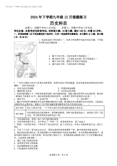 转载请注明出处: 名校卷 » 2024-2025-1雅礼教育集团四校联考初三第三次月考历史试卷(含答案)
