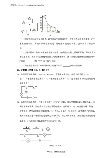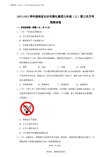 转载请注明出处: 名校卷 » 2021-2022学年湖南省长沙市雅礼集团九年级(上)第三次月考物理试卷
