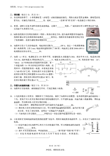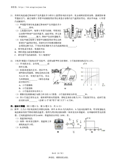 转载请注明出处: 名校卷 » 231206-10一中青一2023-2024-1九上三次月考物理(含参考答案)(已核对)